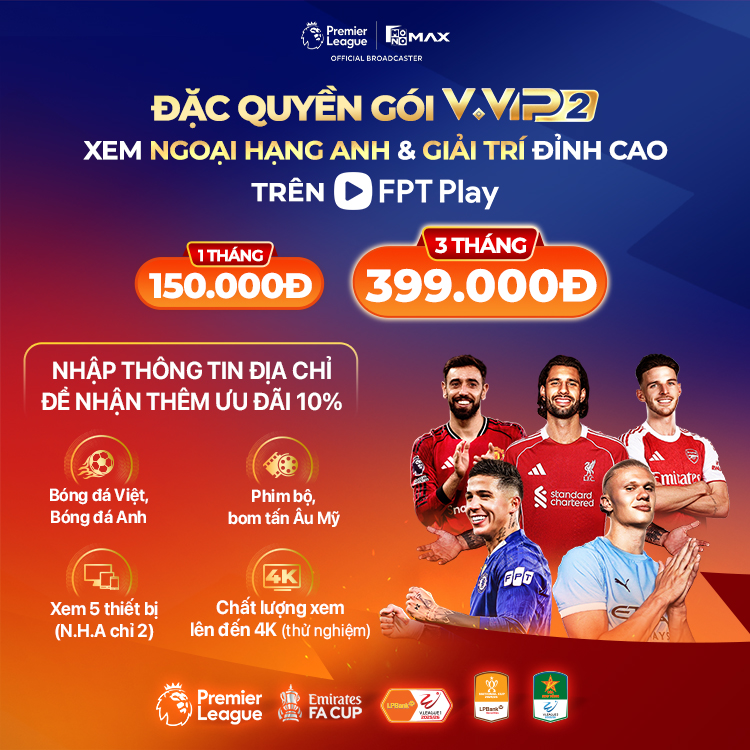 - Trọn vẹn thể thao đỉnh cao như Ngoại Hạng Anh 2025/26, The Emirates FA Cup 2025-26, LPBank V.League 1-2025/26...